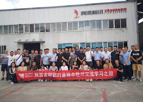 学习团受到成都奔流标识制作有限公司的总经理梁敏女士热情接待,梁总带领大家参观车间,奔流标识创立于1998年,产品主要包括:大型导示系统工程、室内外灯箱、标识标牌、灯箱工程、发光字、光电装饰、雕塑景观及创新型智能标识等,提供勘测、设计、制作、安装、售后一体化服务并交流目前的行业大环境和加工企业存在的一下问题,互相学习,取长补短。